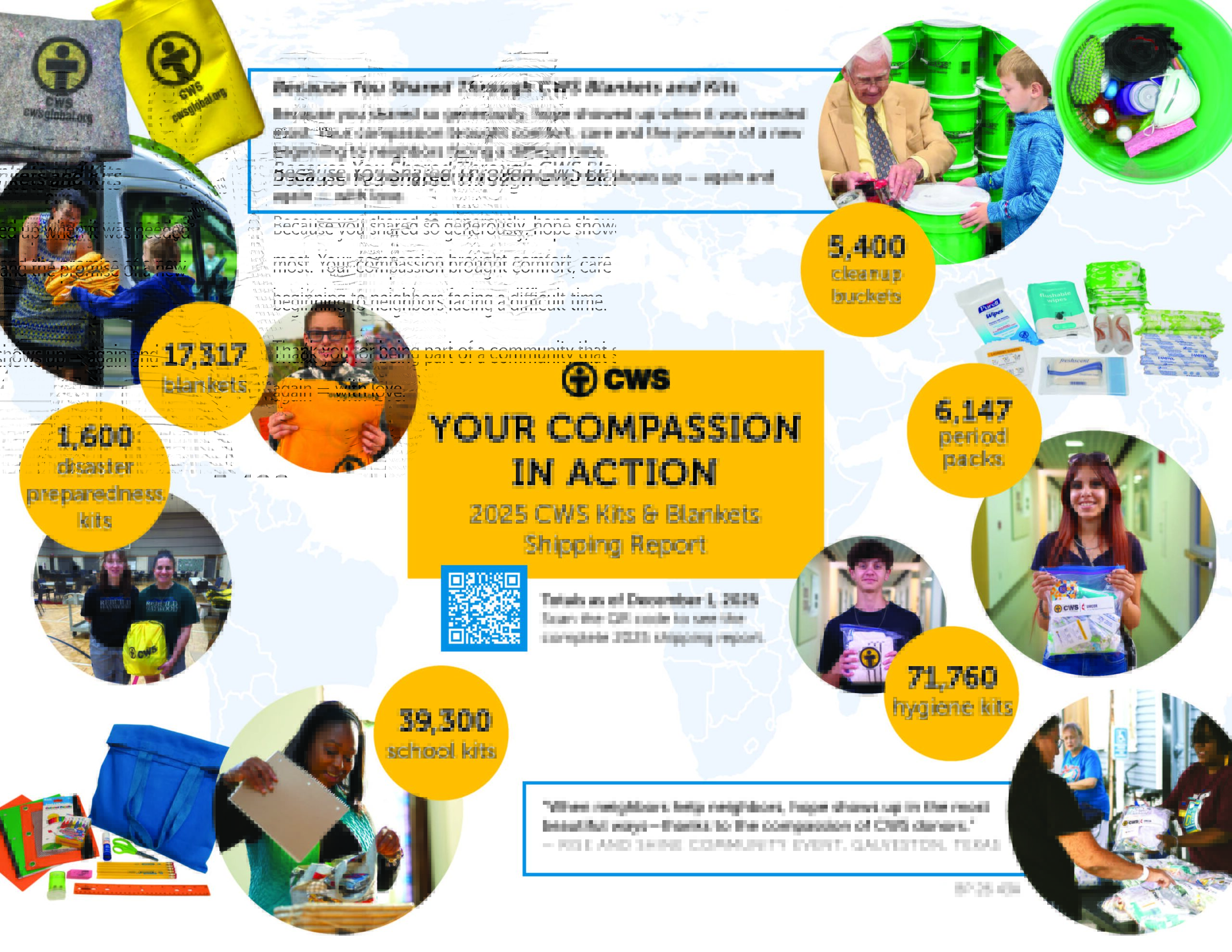 Your support has provided hope to communities across the country and around the world. From all of us at CWS, thank you for helping us close 2025 with compassion and resilience. To see the full impact of your generosity, scan the QR code below for our 2025 CWS Kits and Blankets Shipping Report.