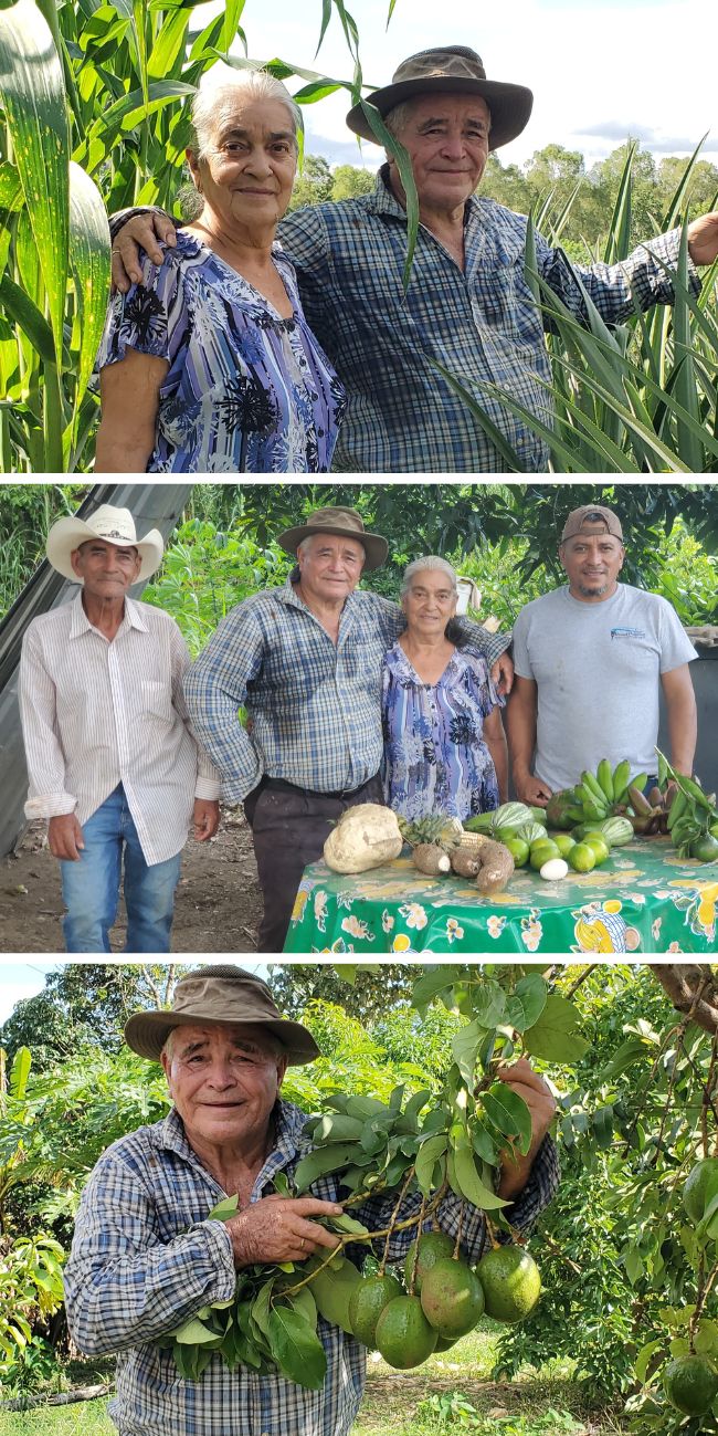 Top: Rigoberto and his wife, Ofelia Middle: Rigoberto, Ofelia and Marco Bottom: Rigoberto with one of his fruit trees